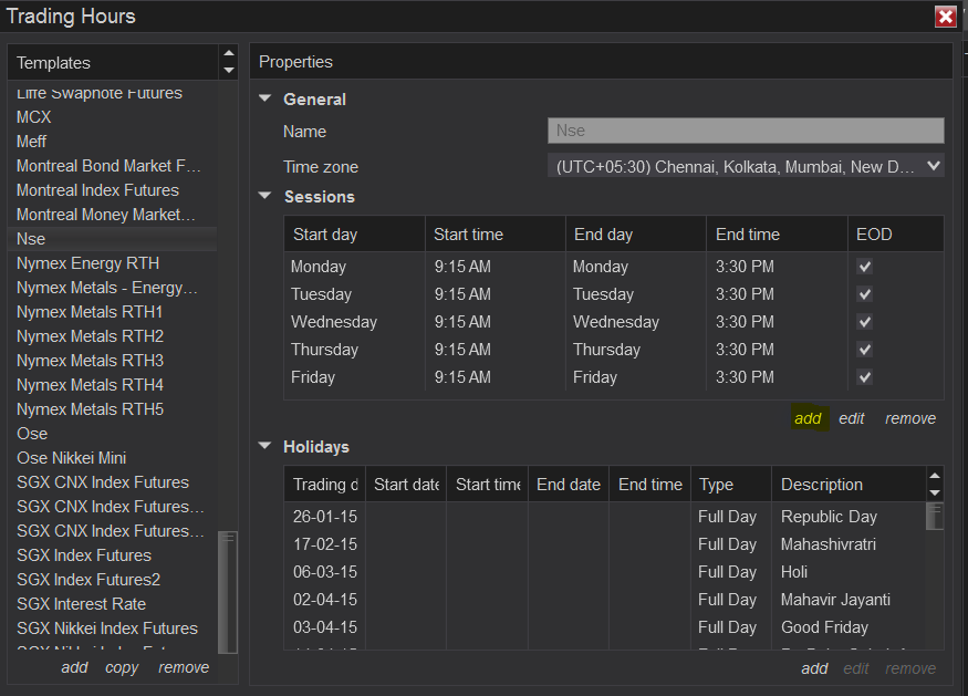 Step 4: Set Start and End Day as Saturday, and configure the session time to 9:15 AM β 3:30 PM (as per NSE).